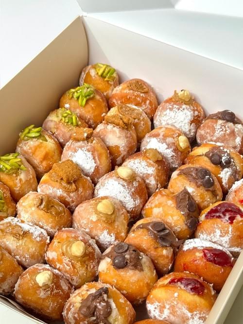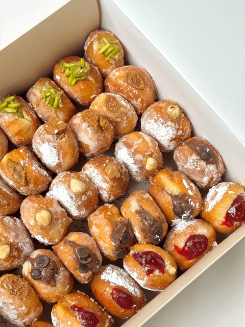 Mini Filled Donuts Assorted Box features soft, fluffy bite-sized donuts, each filled with luscious, flavorful fillings for a delightful treat: